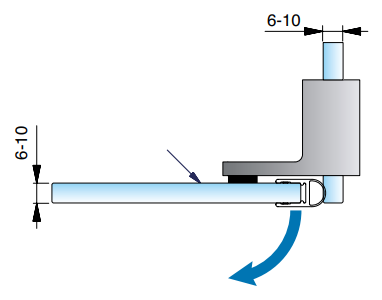 Met deze deurstopper / aanslag maakt u eenvoudig een enkelwerkende deur van een dubbelwerkende deur. Voor deze deurstopper is geen glasbewerking nodig. Beschikbaar in een rechter variant en een linker variant.